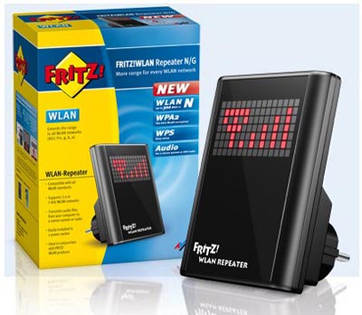 El fabricante alemán AVM ha anunciado la disponibilidad del FRITZ!WLAN Repeater N/G, un extensor de cobertura WLAN que permite incrementar la cobertura de la red WLAN con tan sólo presionar un botón, independiente del router con el que se opere (estándares 11a/b/g/n).