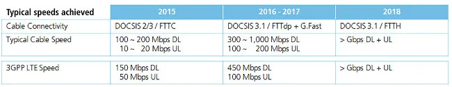 Figura 3: Una comparación de la evolución de las capacidades de LTE y cable